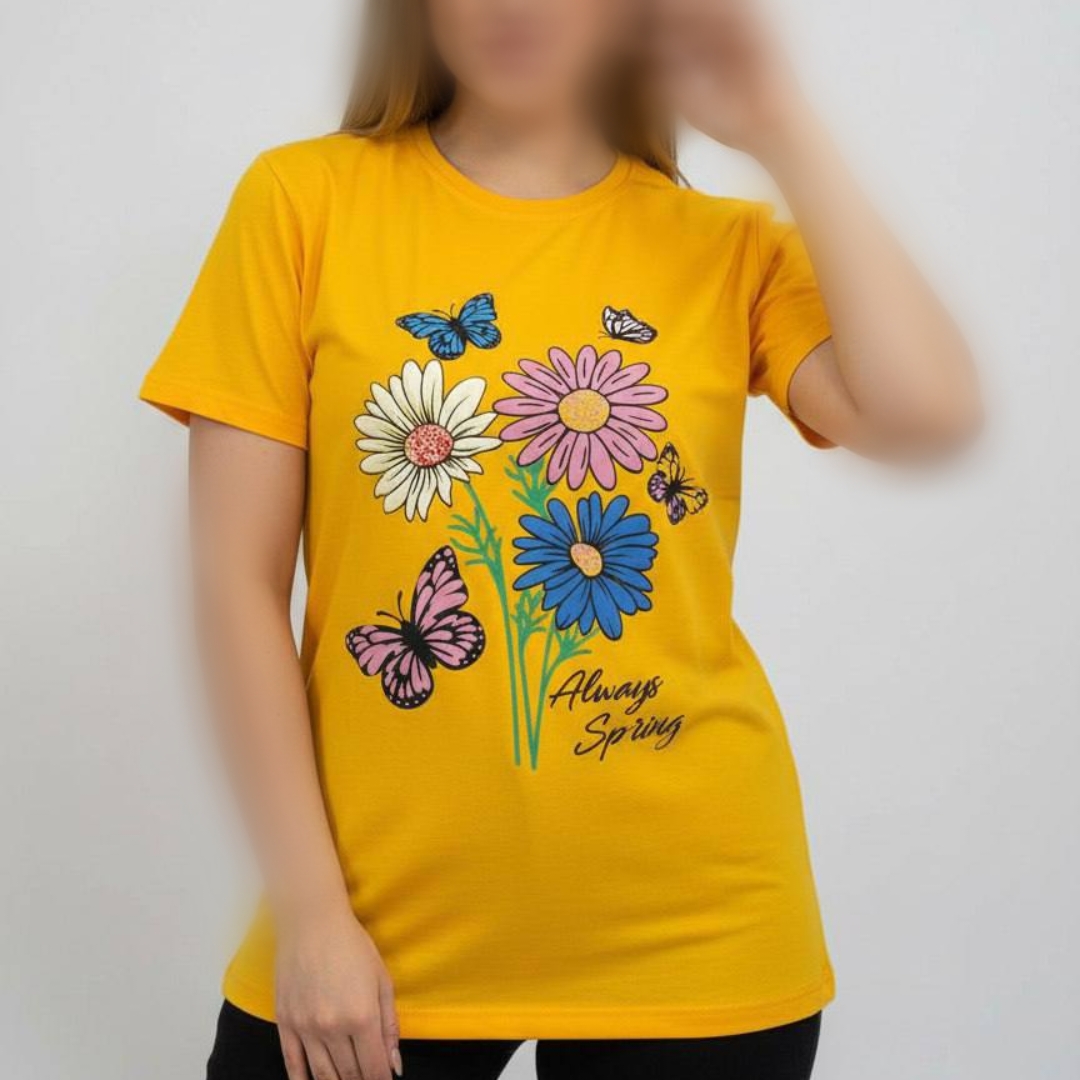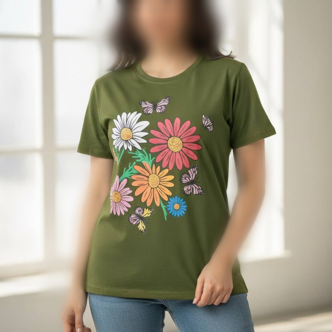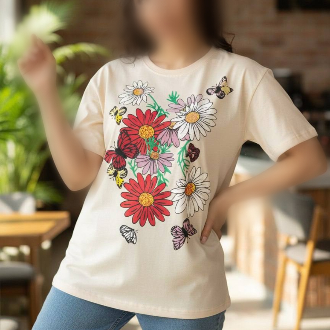 تیشرت چاپ پفکی گل (پک 6 عددی)