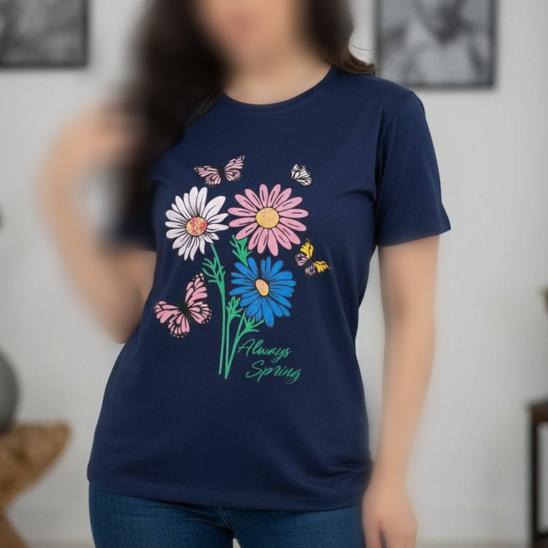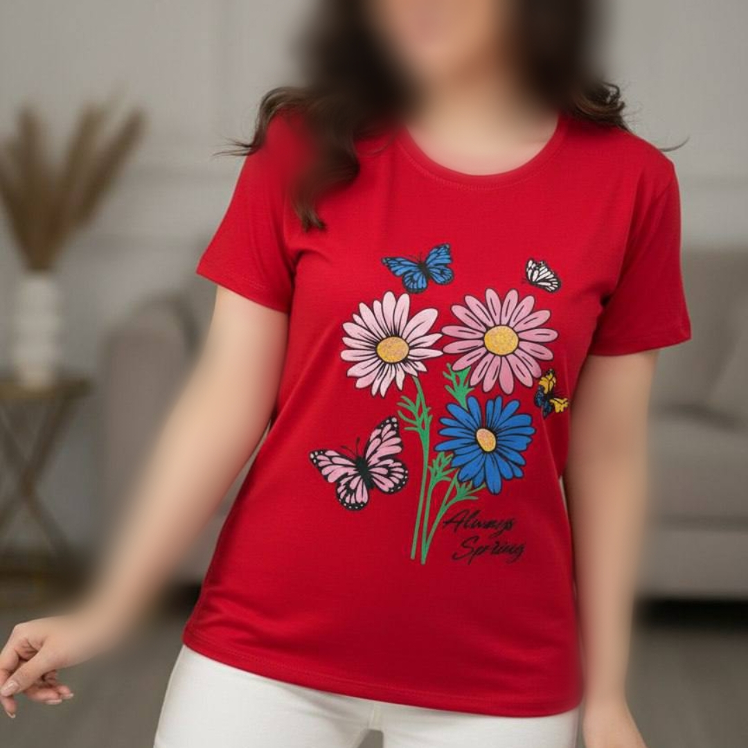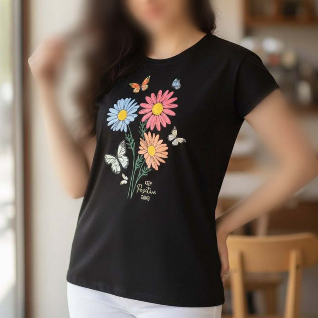 تیشرت چاپ پفکی گل (پک 6 عددی)