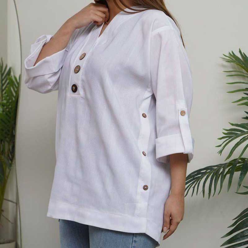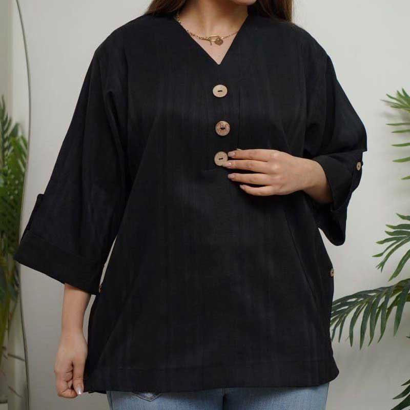 مشخصات محصول شومیز یقه هفت سه دکمه چوبی (پک 4 عددی)