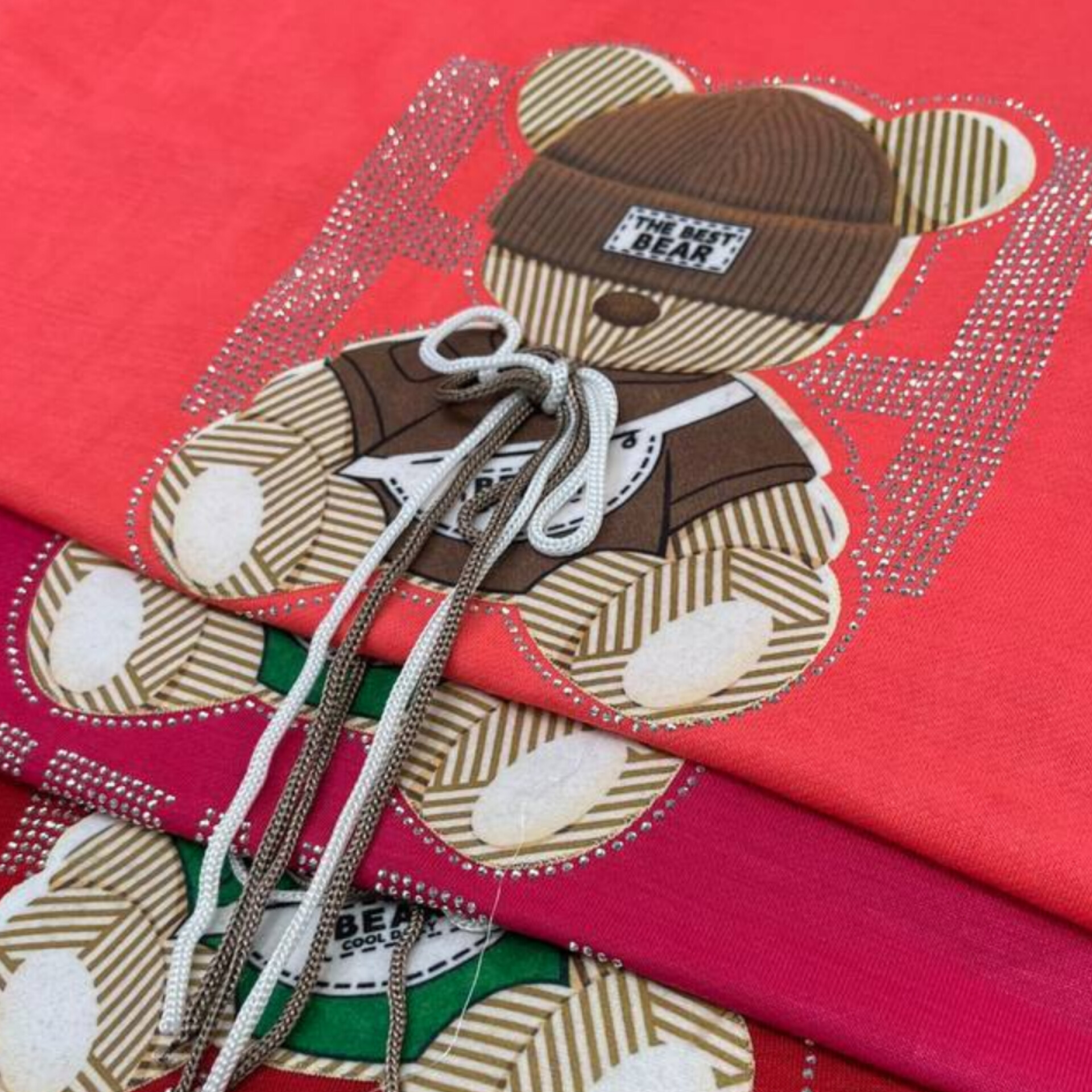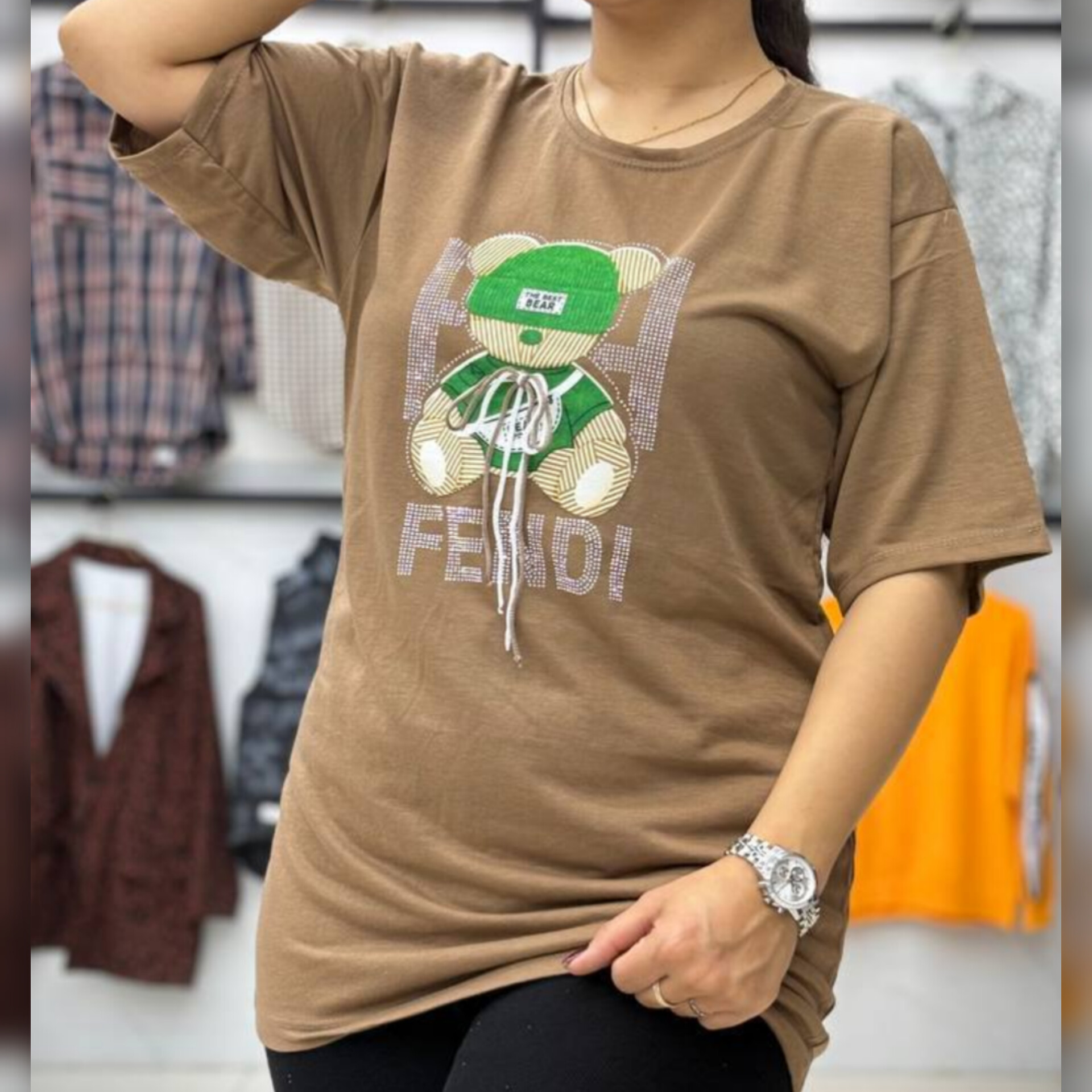 مشخصات محصول ️تیشرت لانگ لش تدی نگینی عمده (پک 6 عددی)